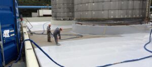 La poliurea es un material impermeabilizante que se utiliza a menudo en entornos industriales y comerciales para proteger las superficies de los daños causados por el agua. Se aplica como revestimiento líquido, que cura rápidamente formando una barrera impermeable y duradera. Puede utilizarse para impermeabilizar cubiertas, cimientos y otras superficies. También se utiliza para sellar estructuras de hormigón, como piscinas, depósitos de agua y muros de contención. La poliurea es conocida por su excelente resistencia al agua, a productos químicos, a la abrasión y a los impactos, lo que la convierte en una opción ideal para impermeabilizar superficies expuestas.